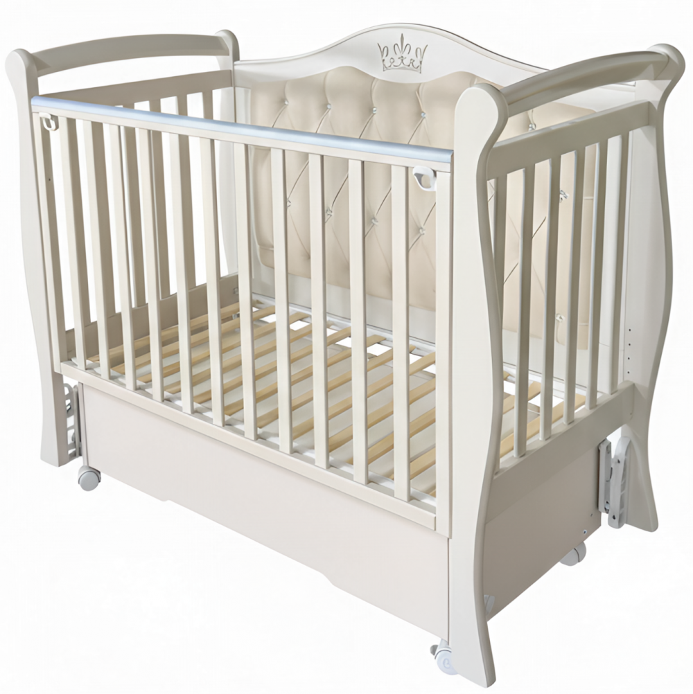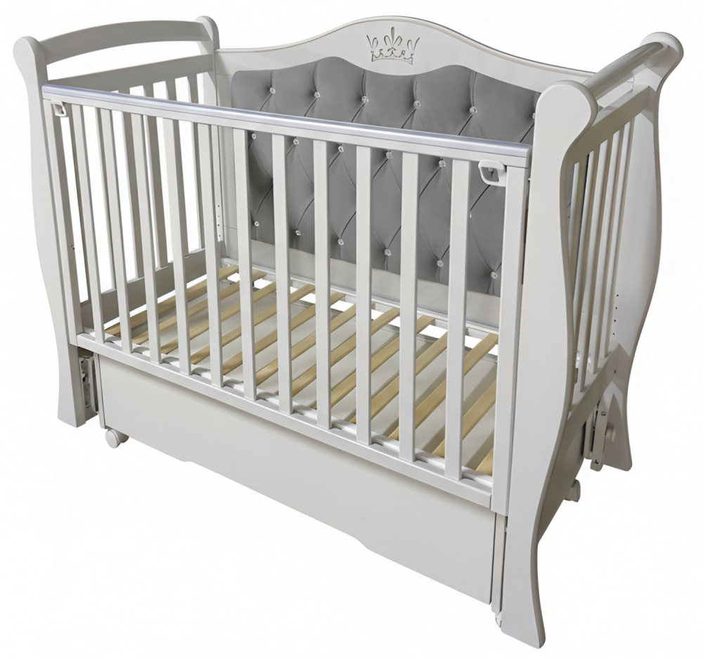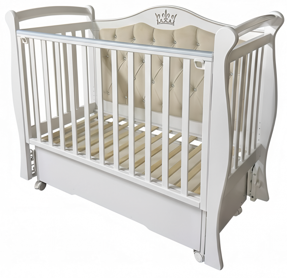 Кроватка ДАНИЭЛА 3 с мягким задним ограждением и фигурными боковыми спинками сочетает в себе классический дизайн, комфорт и широкий набор функций. Кровать выполнена из экологически чистых материалов, которые абсолютно безопасны для ребенка. Модель оснащена подвижными передним ограждением с удобным механизмом фиксации в двух положениях по высоте. В комплекте с кроватью есть универсальный маятниковый механизм, что позволяет собрать кровать либо с поперечным маятником, либо с продольным, в зависимости от того, какой тип укачивания Вам необходим. Также в комплекте есть колеса, который можно использовать одновременно с маятниковым механизмом. Удобный вместительный ящик на шариковых направляющих позволяет хранить в нем вещи не опасаясь за то, что внутрь попадет пыль.