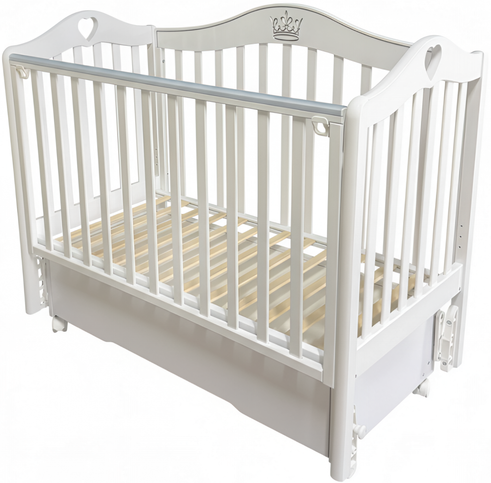 Кроватка ДАРИНА 3 выполнена из экологически чистых материалов, которые абсолютно безопасны для ребенка. Модель оснащена подвижными передним ограждением с удобным механизмом фиксации в двух положениях по высоте. В комплекте с кроватью есть универсальный маятниковый механизм, что позволяет собрать кровать либо с поперечным маятником, либо с продольным, в зависимости от того, какой тип укачивания Вам необходим. Удобный вместительный ящик на шариковых направляющих позволяет хранить в нем вещи не опасаясь за то, что внутрь попадет пыль. Также в комплекте есть колеса, что позволяет перемещать кровать по комнате.