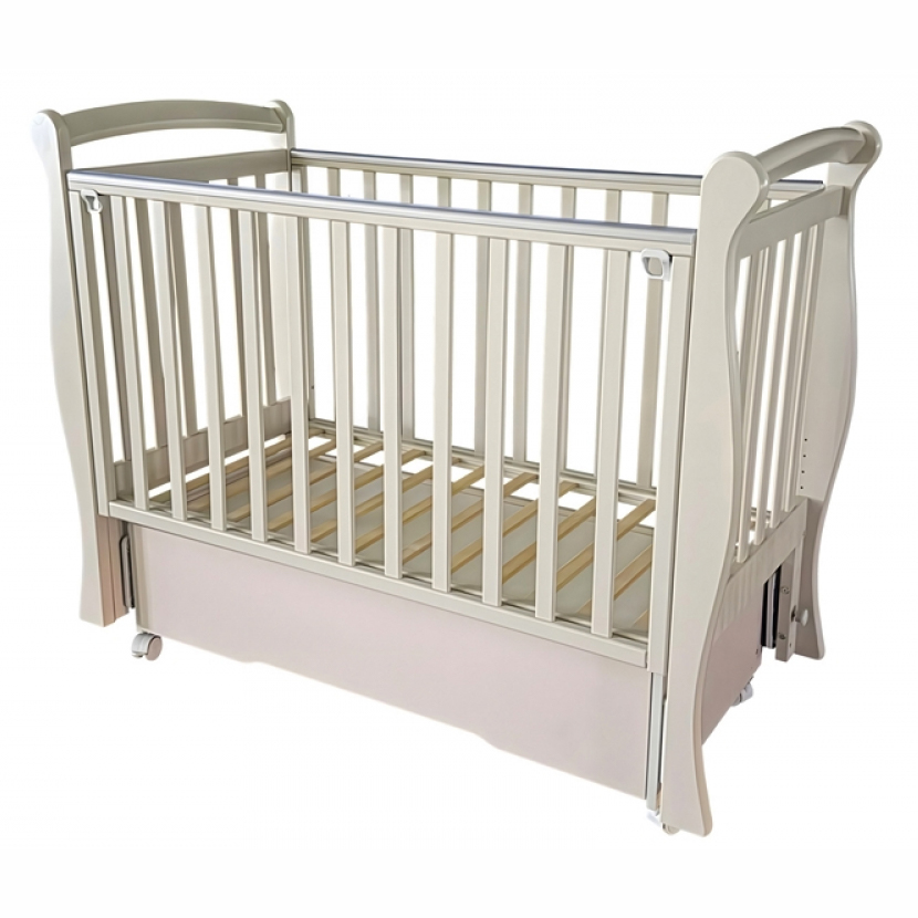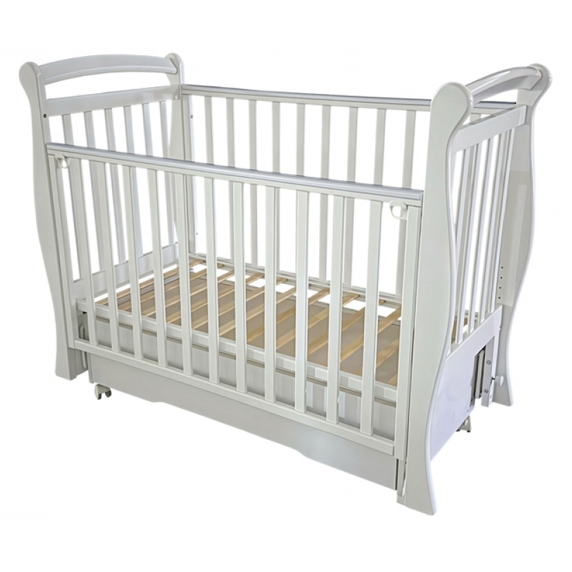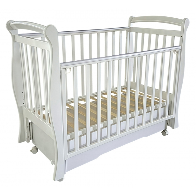 Кроватка Viola 1 выполнена из экологически чистых материалов, которые абсолютно безопасны для ребенка. Модель оснащена подвижными передним ограждением с удобным механизмом фиксации в двух положениях по высоте. В комплекте с кроватью есть универсальный маятниковый механизм, что позволяет собрать кровать либо с поперечным маятником, либо с продольным, в зависимости от того, какой тип укачивания Вам необходим. Удобный вместительный ящик на шариковых направляющих позволяет хранить в нем вещи не опасаясь за то, что внутрь попадет пыль.