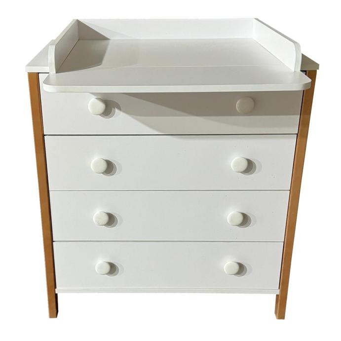 Пеленальный комод ADELE - практичный и незаменимый предмет мебели в детской комнате. Комод имеет 4 выдвижных ящика на шариковых направляющих, колесики для удобства перемещения, съемный пеленальный столик для проведения всех необходимых гигиенических процедур с малышом.
