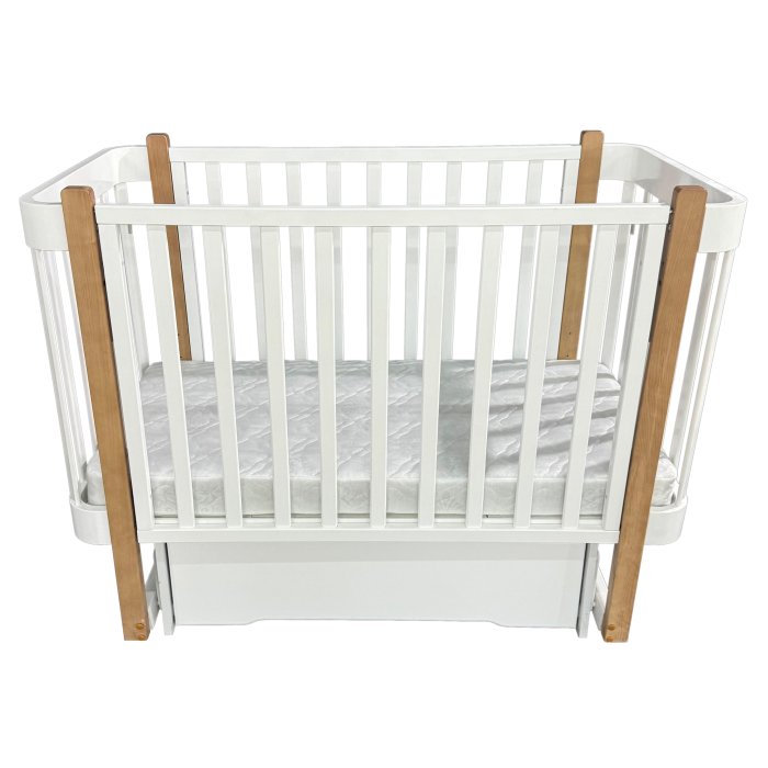 Кроватка FLORENCIA 2 С ЯЩИКОМ - укомплектована поперечным маятниковым механизмом. Подвижное переднее ограждение с удобным механизмом фиксации в двух положениях по высоте обеспечивает свободный доступ к малышу. Вместительный ящик в основании кровати закрыт от попадания пыли. Кровать выполнена из экологически чистых материалов, которые абсолютно безопасны для ребенка